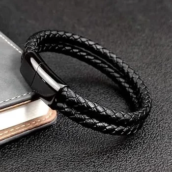 Leather Bracelet For Men With Metal Magnetic Clasp Leather Bracelet For Men With