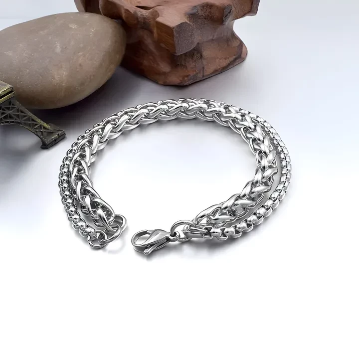 Minimalistic Double Chain Stainless Steel Bracelet For Men