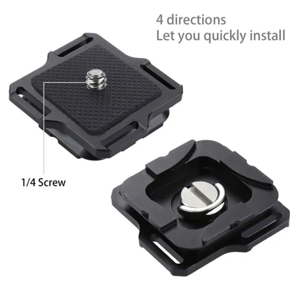 Features: Aluminum alloy quick release clip, a solution for quick shoot. The quick release plate with 1/4 inch screw, compatible with most DSLR camera, digital camera, DV. Allow you to quick mount and quick take off your camera. Capture holds your camera completely rigidly, suitable for more intense activities like hiking, biking, skiing, snowboarding and climbing. Aluminum construction, holding camera any places while providing instant access for picture-taking. Easy attach with waistband, a convenient, accessible way to carry your camera.