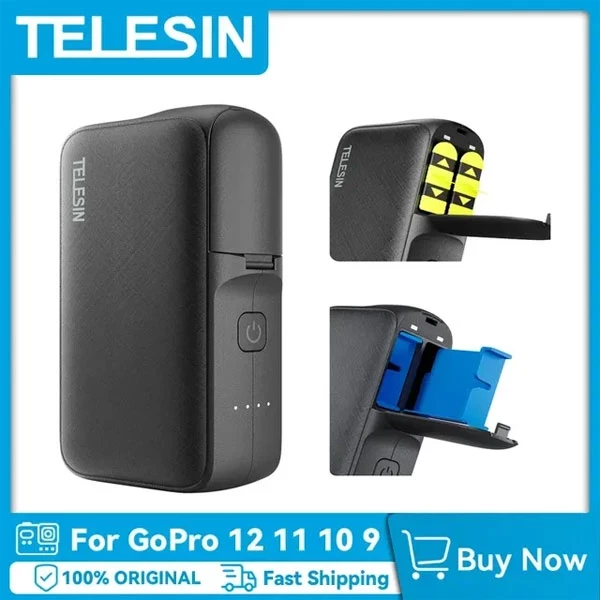 Telesin 10000mAh Power Bank Charger box for GoPro Hero 5/6/7/8/9/10/11 Camera Ba