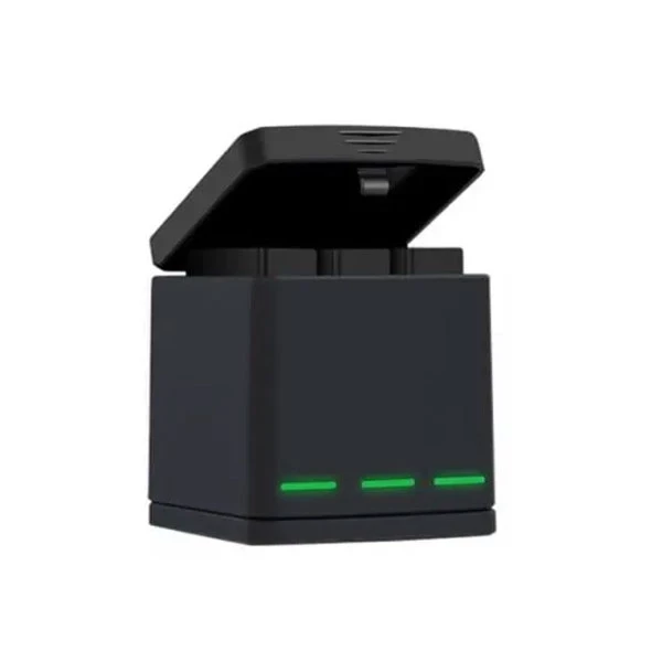 Unique and Compact Charger comes with a closed lid, can storage and charge 3 batteries simultaneously, with smart charging indicator LED light, Red for charging, Green for charging completed. Charging Time: about 2 hours for 3 batteries.