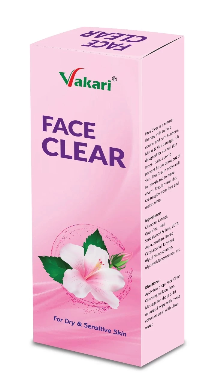 Vakari Face Clear is a natural therapy milk to help control and cure Sunbron, Marks & Skin Damage. It Also Cure To prevent Future Brake out of skin. this cream active cell to refresh and to make charm. Regular uses this cream glow your face and makes white.